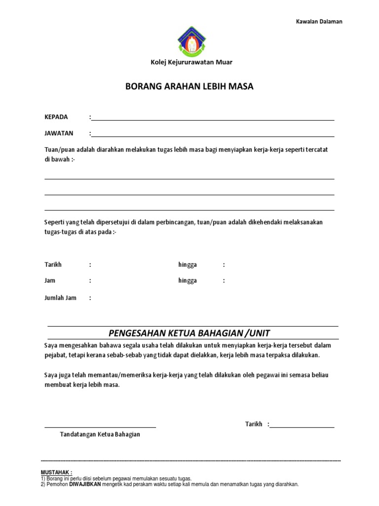 Related : Garis Panduan Pembayaran Elaun Lebih Masa - Pemakaian garis panduan ini dapat mengurangkan risiko, kos dan kerugian kepada kerajaan di samping meningkatkan penyampaian perkhidmatan mof ke tahap yang lebih cemerlang, tersusun serta mempunyai perancangan yang rapi dan mampan..