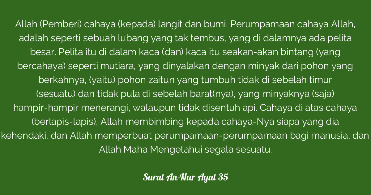 Dalam surat an nur ayat 35 ini, allah adalah cahaya itu sendiri, dan manusia diperintahkan untuk.