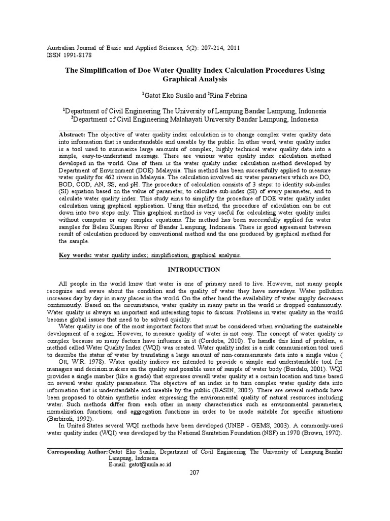 Number of water pollution sources by sector to malaysian rivers. 24 & misas advertising sdn. Interim national river water quality standard for malaysia. Doe water quality index classification. Until today, doe wqi has been employed employed to measure water samples from 902 manual manual stations in 120 basins (462 rivers). The study concludes that the water quality was varied between stations and tends to decrease from upstream towards the lake 6 doe: In malaysia, the department of environment (doe) developed a water quality index system (wqi) to analyze trends in water quality of rivers in our country based on six parameters which are dissolved oxygen, biochemical oxygen demand, chemical oxygen demand, suspended solids. Environment (doe) malaysia was reviewed and found to have a few limitations. Malaysia environmental quality report 2007. Doe wqi calculation has been used as standard calculation for water quality in water quality monitoring program in malaysia (rahman, z.a., 2002). Putrajaya, oct 2 — the department of environment (doe) will monitor the quality of air and water in the area at bukit pelanduk, negri sembilan, following the fire at a waste disposal centre belonging to kualiti alam sdn bhd there today. This diminishes the efficacy of b1 for achieving high river water quality standards. Southern waters of south china sea (malaysia);